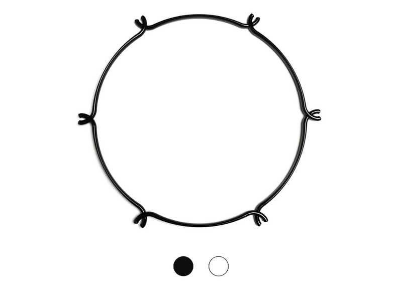 Το "Cage" συντίθεται ξεκινώντας από στρογγυλούς ή τετράγωνους κρίκους, διαθέσιμους σε δύο διαφορετικά μεγέθη, σε λευκό ή μαύρο φινίρισμα από ανακυκλωμένο πολυμερές ή διάφανο πολυκαρβονικό. Συνδυάζοντάς τα με τα καλώδια και τους λαμπτήρες της επιλογής σας, μπορείτε να δημιουργήσετε πραγματικά αιωρούμενα γλυπτά.