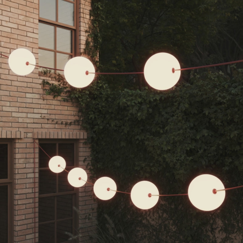 Ένα κρεμαστό φωτιστικό με καλώδια εξωτερικού χώρου, αρθρωτό και ανθεκτικό, σχεδιασμένο να συνοδεύει κάθε στιγμή σε εξωτερικό χώρο — από το σούρουπο ως την αυγή.