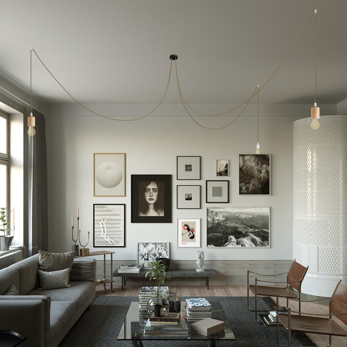 Portalampada: 1° Caduta : 1X [KBL0110] Kit portalampada E27 in legno - Finitura: Neutral